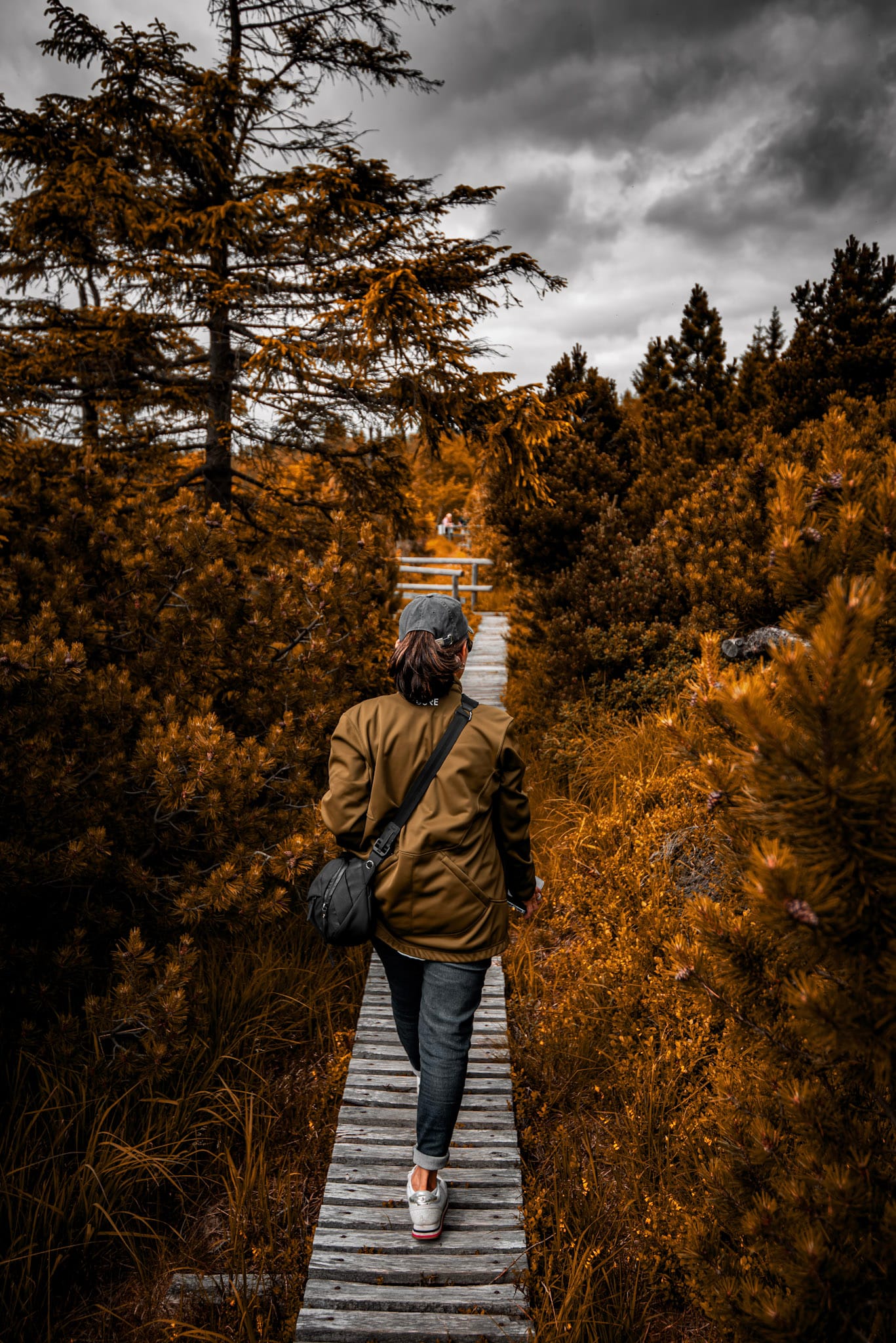 Hier geht man langsam. Man schaut genau hin. Die fleischfressenden Sonnentaupflanzen am Wegesrand. Die Libellen über dem schwarzen Wasser. Die Wolken, die sich im Moor spiegeln wie in einem dunklen Spiegel.